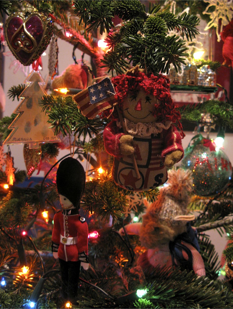 You can’t have missed the Palace Guard to the left and below the American flag. I bought it at Buckingham Palace when Miranda and I spent a week in London in the summer of 2003. It’s been on my tree since, waiting, and perhaps maybe even knowing, that it would find its way back home to England one day.