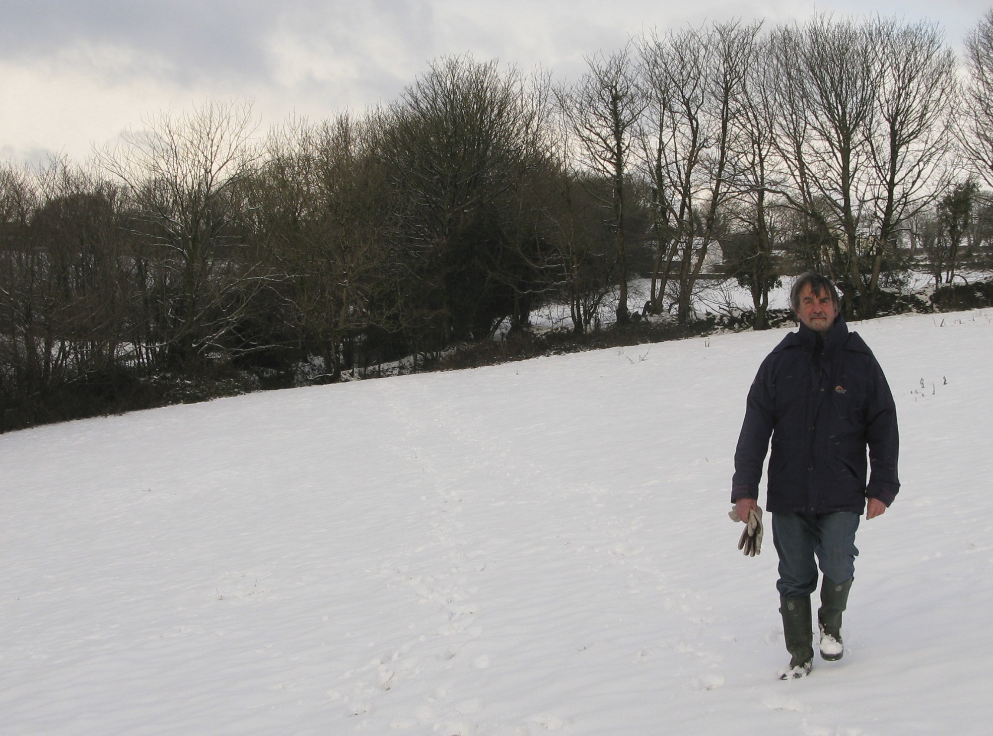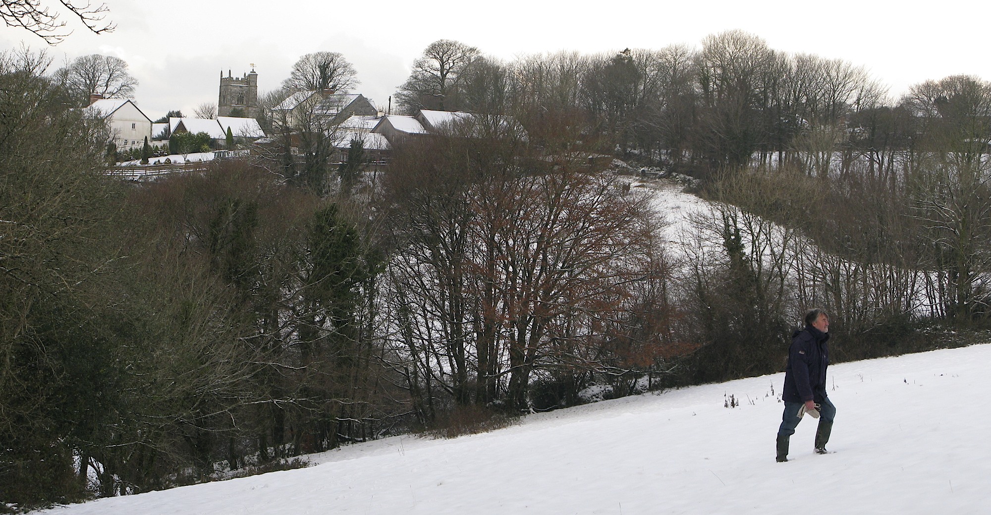 John crossing a farmers field with the entrance to our village in the distance behind him. (see the church tower)