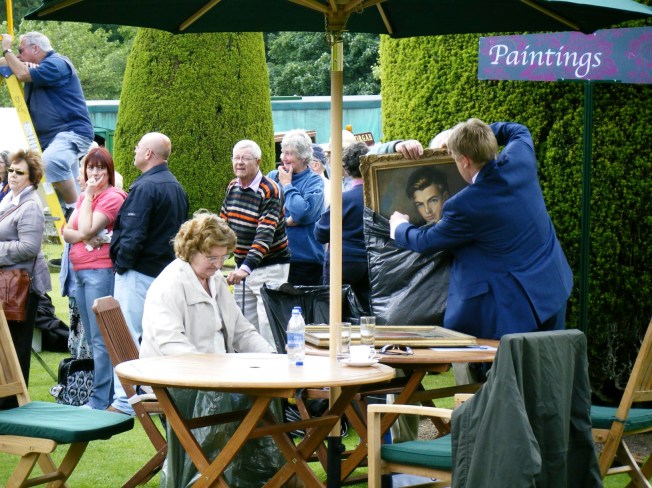 It seemed as if Fiona was everywhere that day, but John remembers one place in particular when he tells the story of our afternoon at Lanhydrock. (I’ll say more about that later) We did a fair amount of standing in lines as we waited to have the items I brought appraised, but with all the activity going on there was a lot to see.
