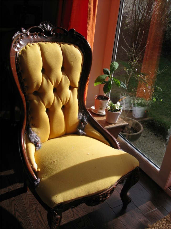This photograph shows you the finished chair with the new look. I’ll be back tomorrow with more from my new space.