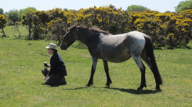 The photos below are some John took a few months ago when the Gorse was in full bloom. I was trying to get a new pony to let me take a few photographs when the moorland horse below decided she’d be happy to give me some of the attention I was trying to coax from the pony. I didn’t know she was behind me until she gave me a little nudge.