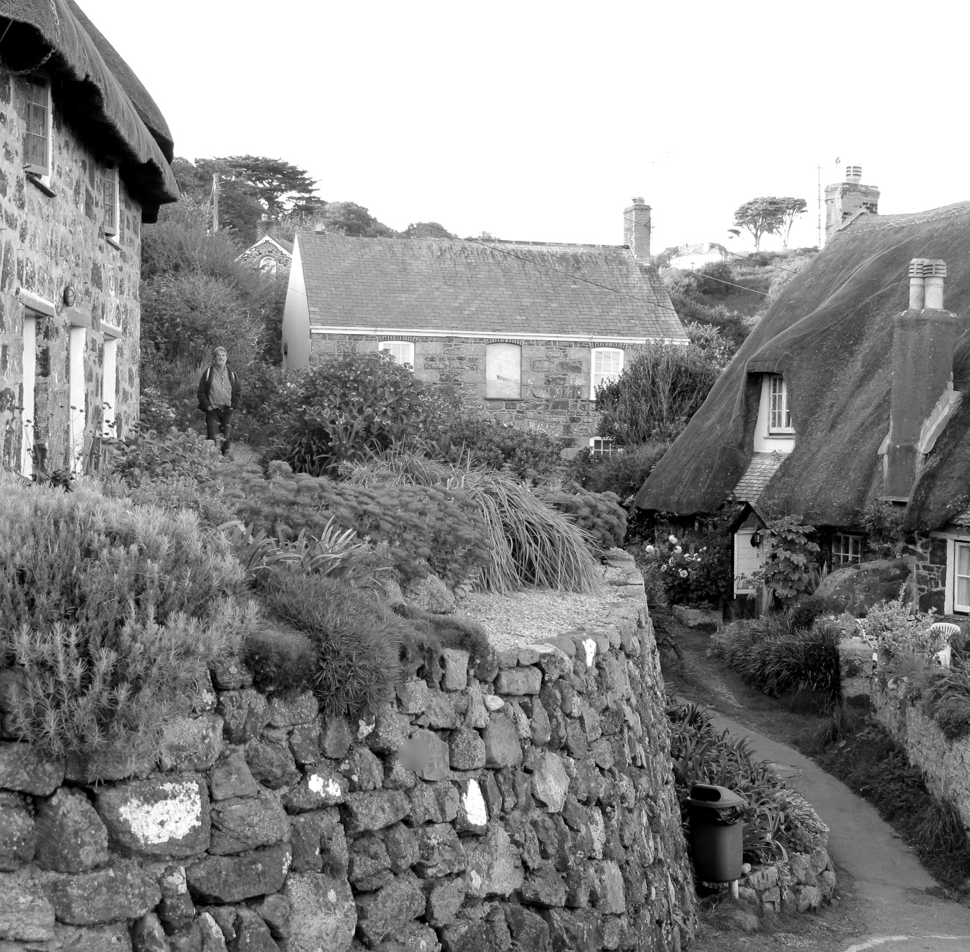 Cadgwith is a sweet little seaside village which looks much the same as it did in 1930 when his dad at sixteen took this photograph while the family was in the area on holiday. I plan to take John’s picture as close to the thatched cottage on the right as I can get and will edit this post to include it when we return. (If you click to enlarge this, you can see John’s grandmother on the left.)