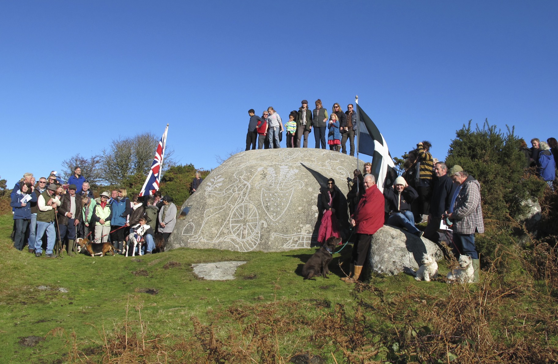 I don’t have copy of the photograph yet, but somewhere there is a picture with me with my neighbors standing round a special rock on Bodmin Moor in much the way locals from the area might have 200 years ago.