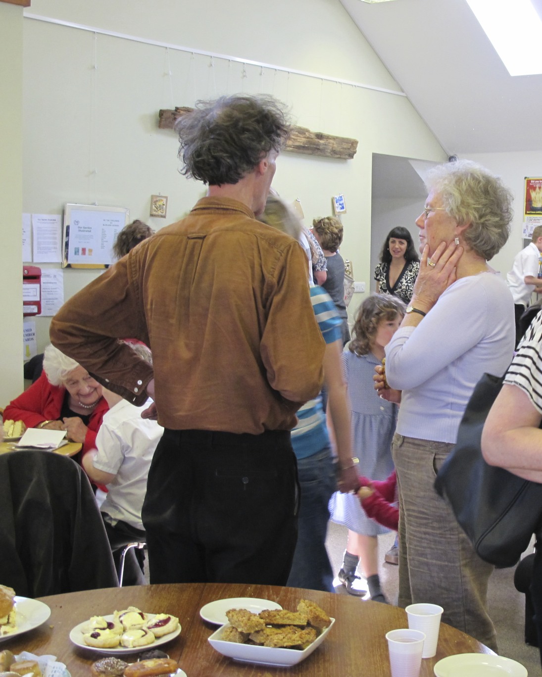 Tina is talking with our friend and neighbor Betty who is wearing blue, and Betty’s friend Beryl, in red.