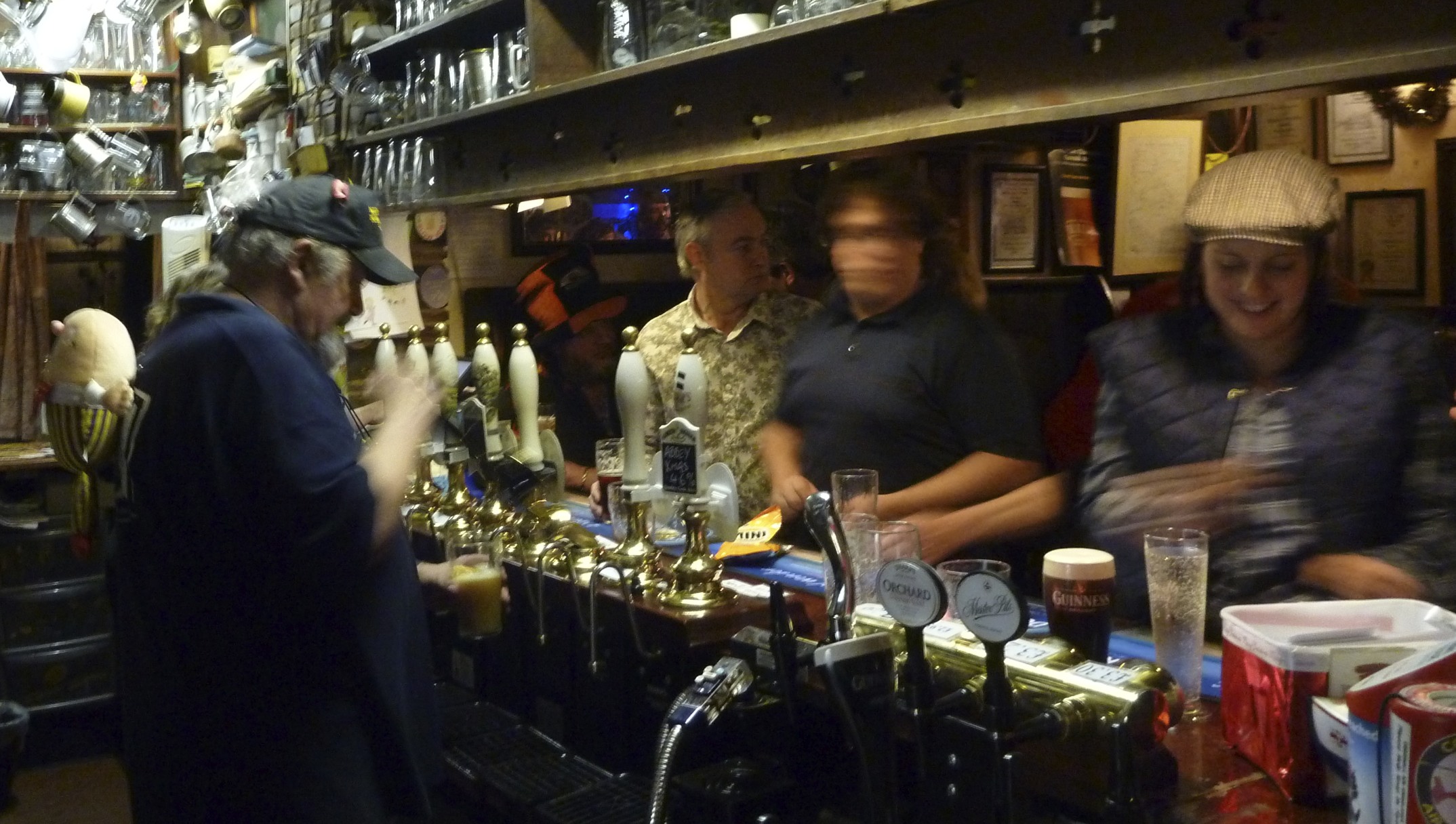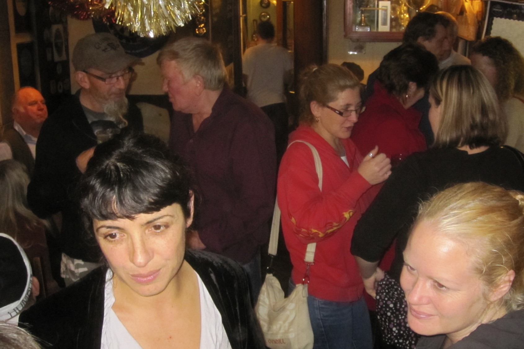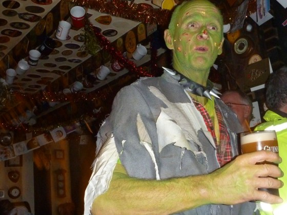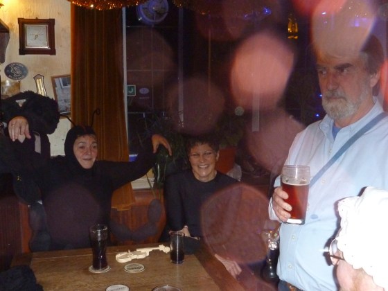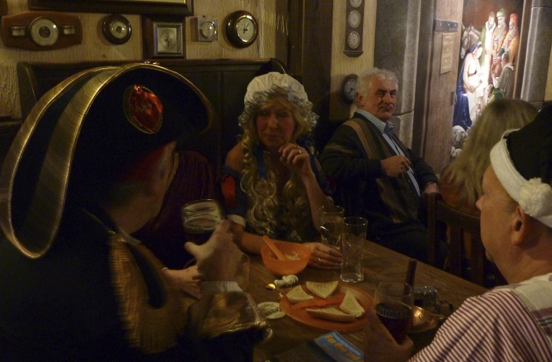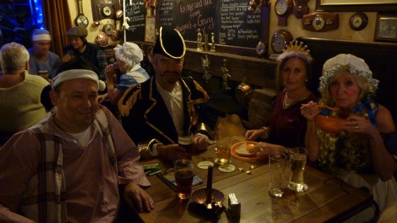 We’ve got a spider and a Cat with a fiddle at the table and that’s John to the right with a pint, all dressed in blue with a horn that is more Harpo Marx than Little Boy Blue, the character he chose for the night.