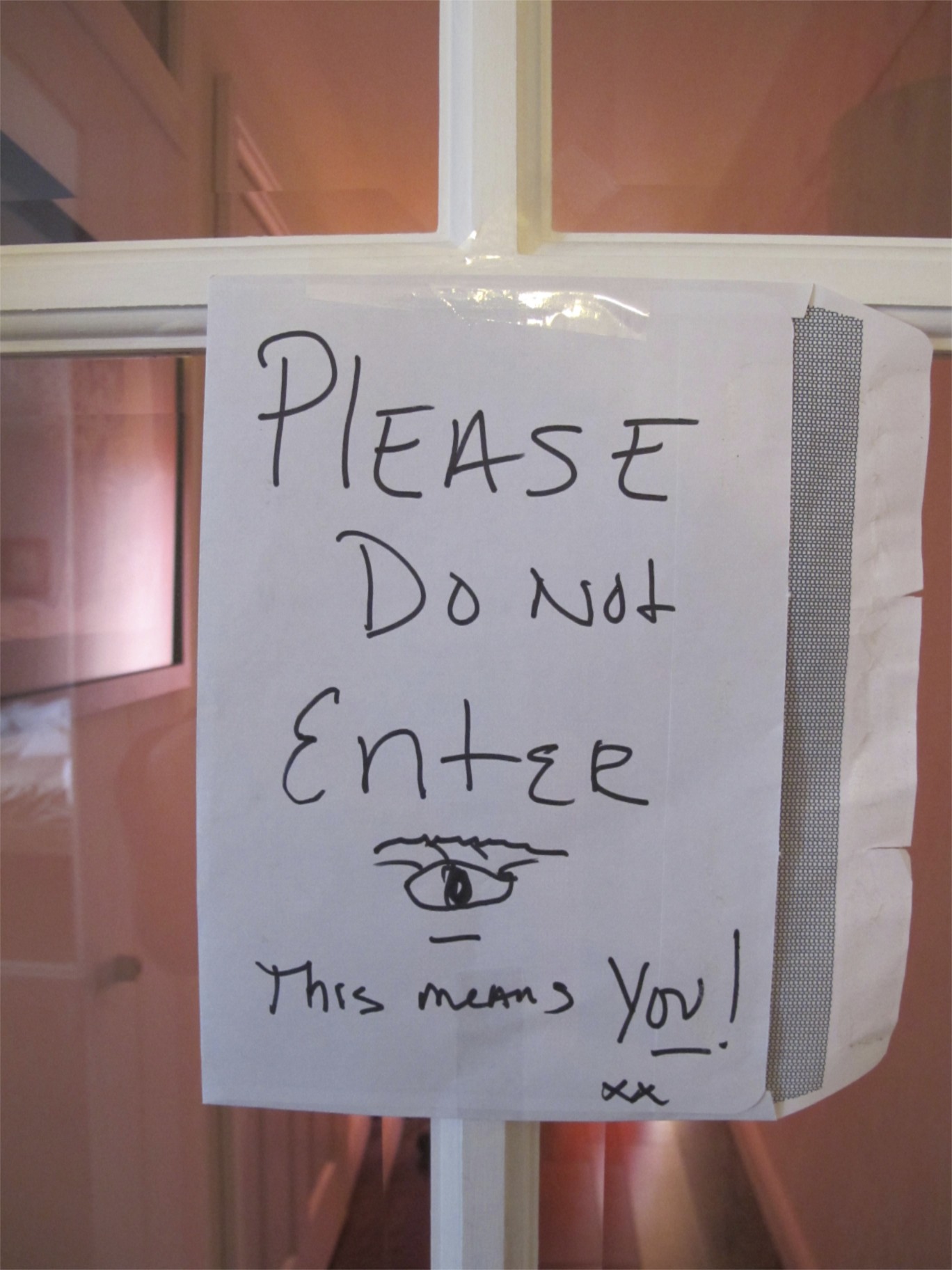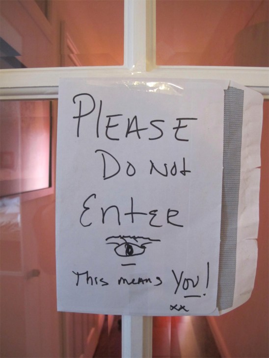 I mentioned the sign to John as I left saying there were things spread about in there that I didn’t want him to see so I’d posted a sign to remind him. I told that trusted him completely which is true, but I didn’t want him to forget and breeze in for something without thinking.