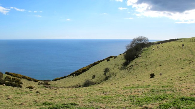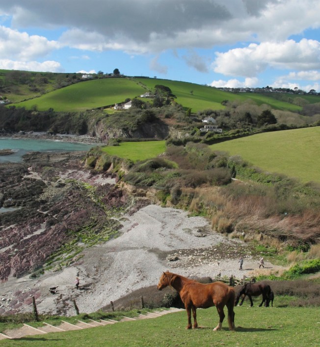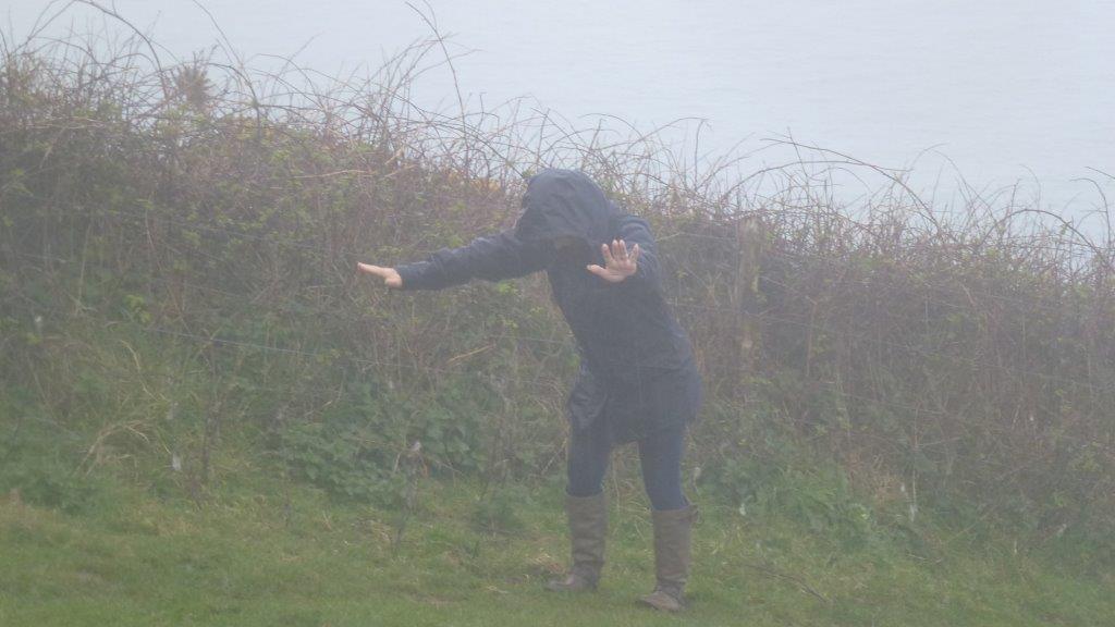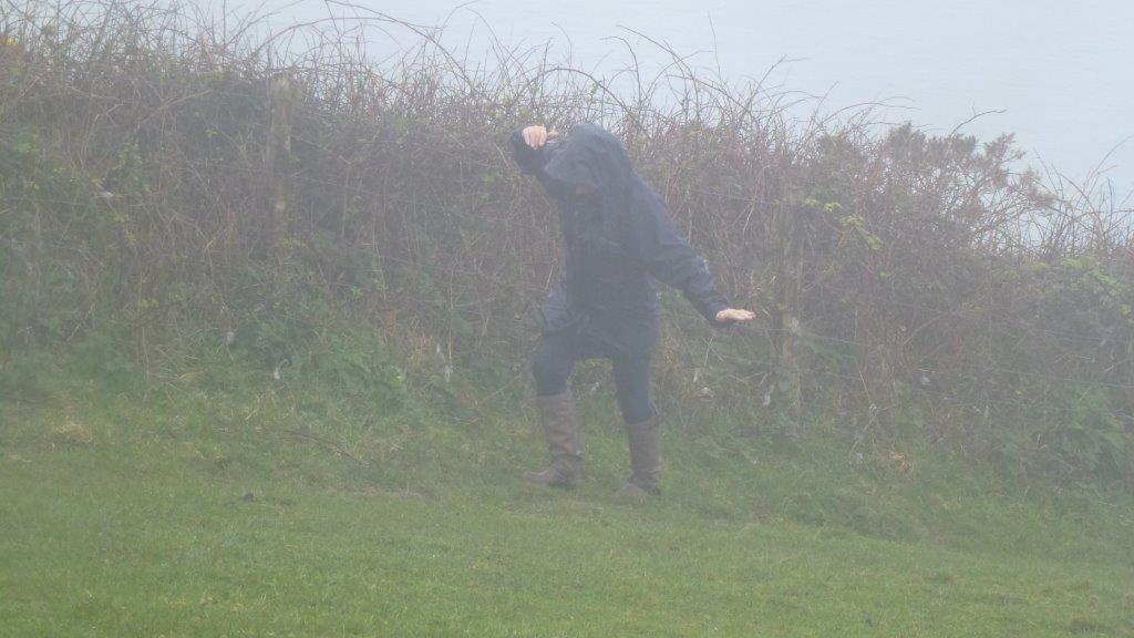 Here we are at the top of a steep and slippery, long hill. Once we reached this point we were only a few fields away from the place where left the car and the relief is showing on our wet faces. John and I don’t usually do long walks in the wind and rain especially along the coast so this was really a first for us. (John said to speak for myself regarding this being a first, but it was a first for us together on the coast path)