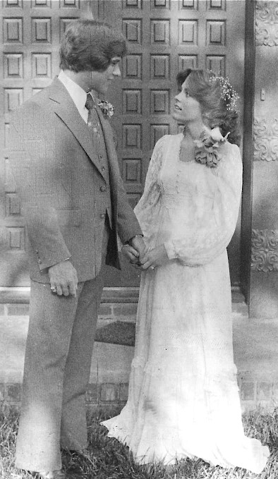 Lifting the hem of my dress a few inches so as not to trip, I ran up the stairs and stood off to one side so I couldn’t be seen from below. I listened as my dad opened the door and greeted my boyfriend and then heard Cullene say, “Elizabeth, Scott’s here.” Pausing for a moment at the top of the stairs, I looked down over the railing smiling at my boyfriend who was wearing a dark suit that he could wear again instead renting a pastel tux, a look that was very popular that year.