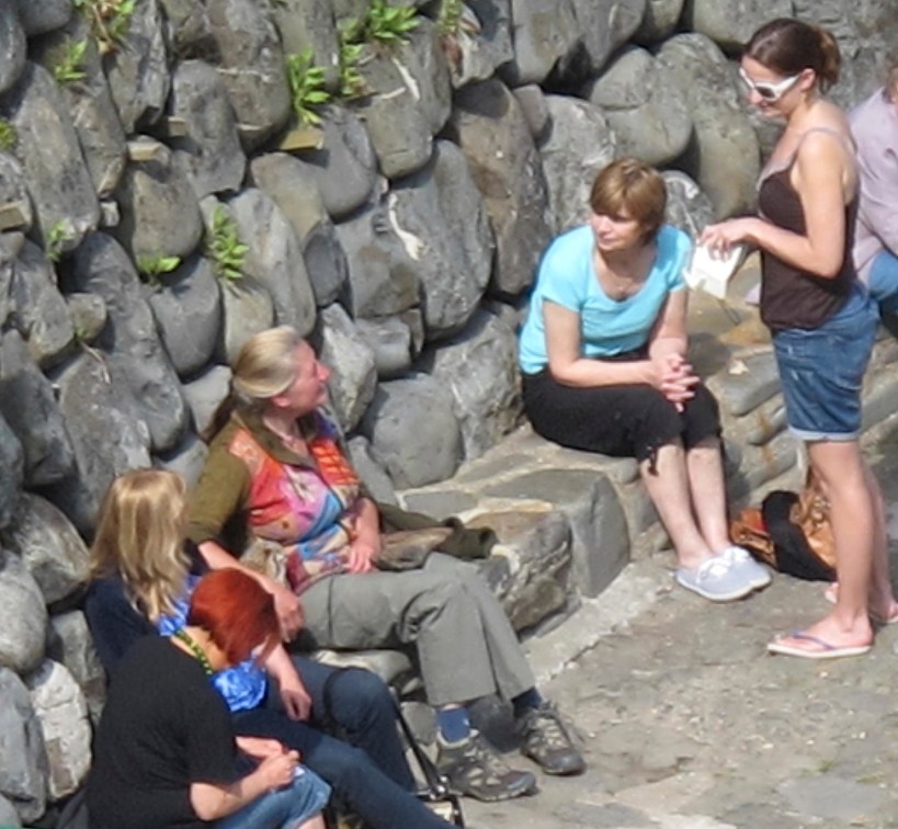 Walking into Clovelly from the coast path last week, I was taken by how the woman’s hair in the photo matched the color of the owl’s eyes. When I politely squeezed my way into the conversation, I was moderately surprised to discover that the six-month old Bengal Eagle-Owl was a pet out for a stroll and not a money making opportunity for the woman you see holding it.