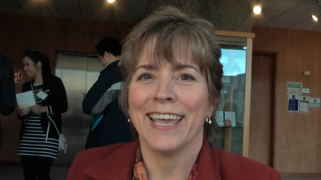 Elizabeth Harper Receiving A Gift Badge/Pin Made Of Cornish Tin From Cornwall County Council Chairman, Mrs. Pat Harvey