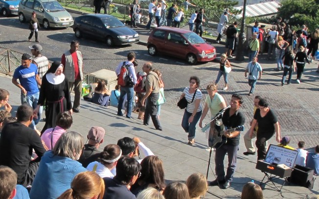 While Donna is not in this blurry shot of some bell ringers in action, I do have some video of her learning how to control the rope.