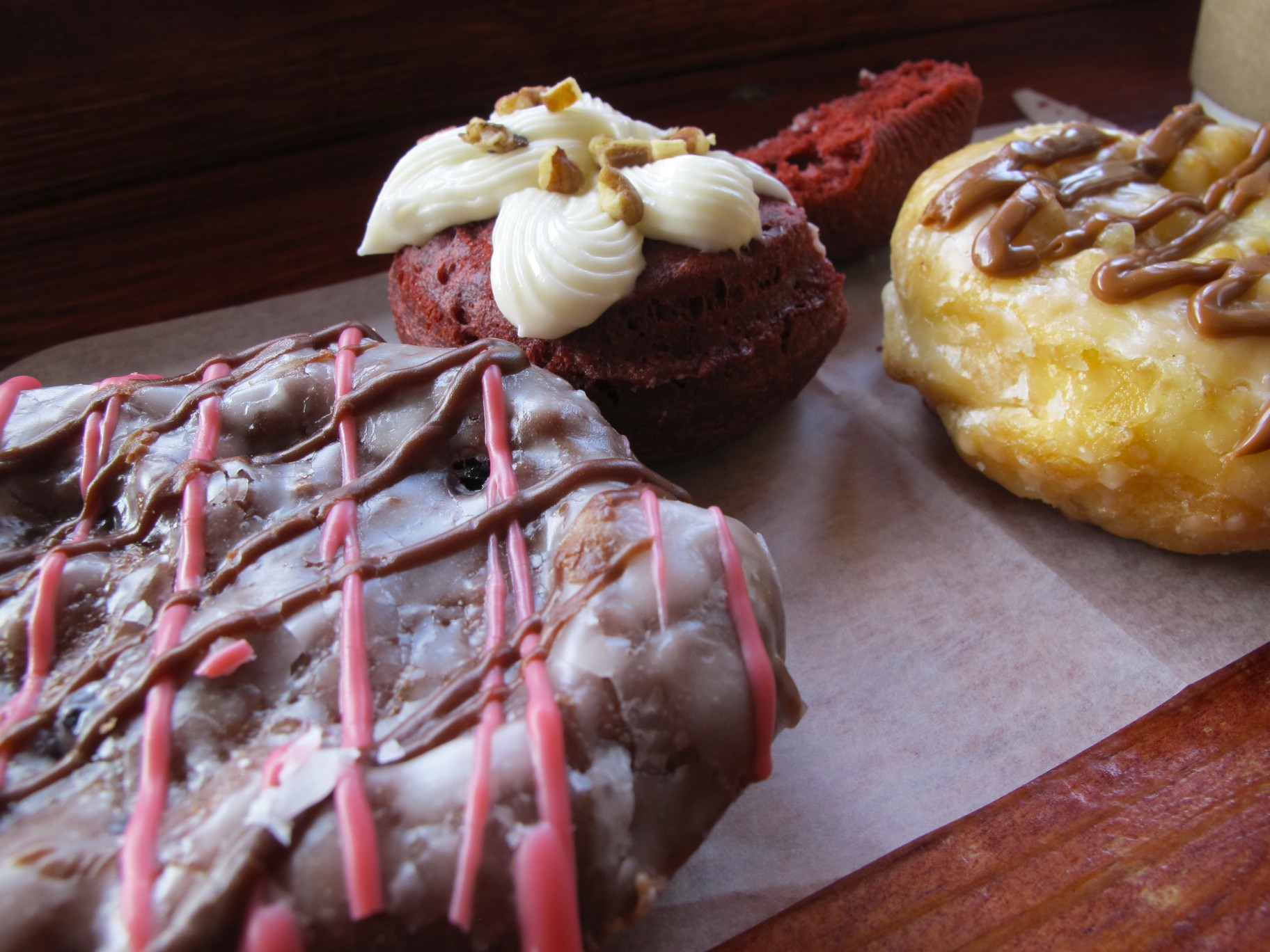 The Red Velvet Cake doughnut was tasty and sweet, but after polishing off the Caramel Apple Fritter and half of the Crackberry, I mean Chocolate Wildberry, all I could manage was a bite-size slice of the Red Velvet Cake doughnut and wrapped up the rest to share later with my daughter.
