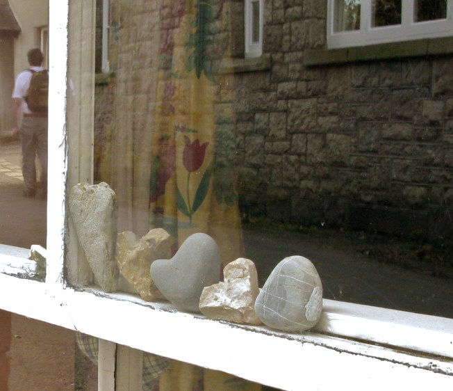 I spotted this collection of everlasting love tokens after a long walk on Dartmoor one day with John. We were passing though a village when I noticed this scene in the window of someone’s home. If you look to the far left you can see John’s reflection lined up perfectly with the heart shaped stones in the window. Sometimes in life you think the thing you are focusing your attention on is all important, but if you pause for a minute and pull back, the real gift is waiting quietly just to be seen.