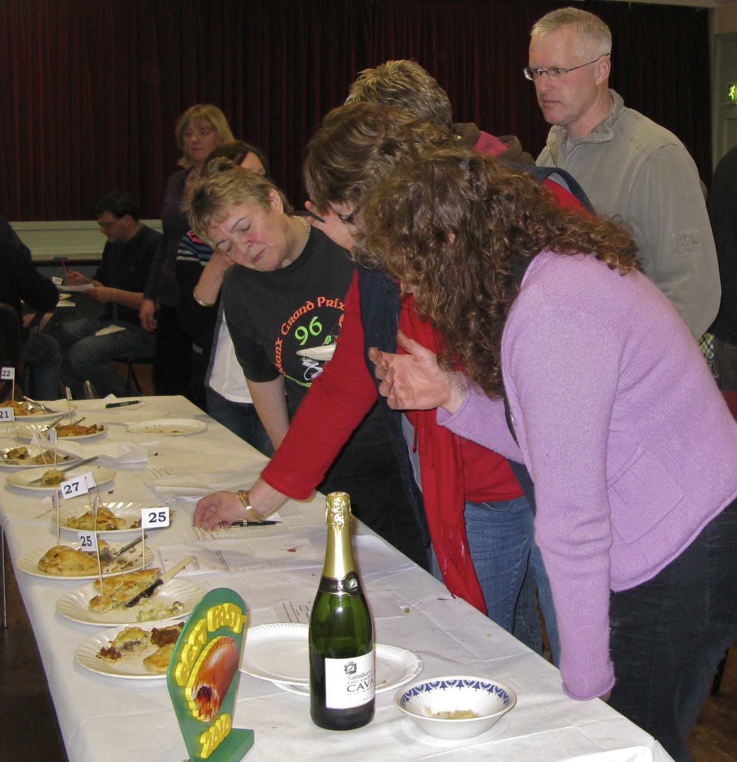 Way back in the top middle of this photograph is Rebecca, the winner from last year. She’s the laughing woman in green and purple. She made a venison sausage with pickled walnuts and I think she called it, Pickled Bambi. (Click to enlarge)