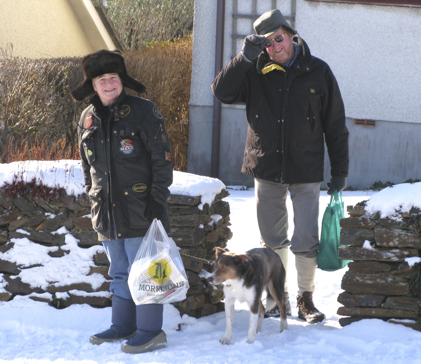 Len and Mary are the couple you see here with their dog. I caught them just after they had returned our neighbor Betty’s dog after taking it up on the moor for walk for her. Having watched Len and Mary pick up deliveries from the village store all week to take around to some of the older people who could not walk to the shop, I can almost guarantee that what ever is in the bags they’re carrying, it is almost certainly a delivery for someone who can’t manage the snow. All of the good neighbors I mentioned have been tireless during this time making sure everyone who needed something was able to get it. I wanted to acknowledge these folks who did so much for the neighborhood and managed to look as if they were having a good time doing it.