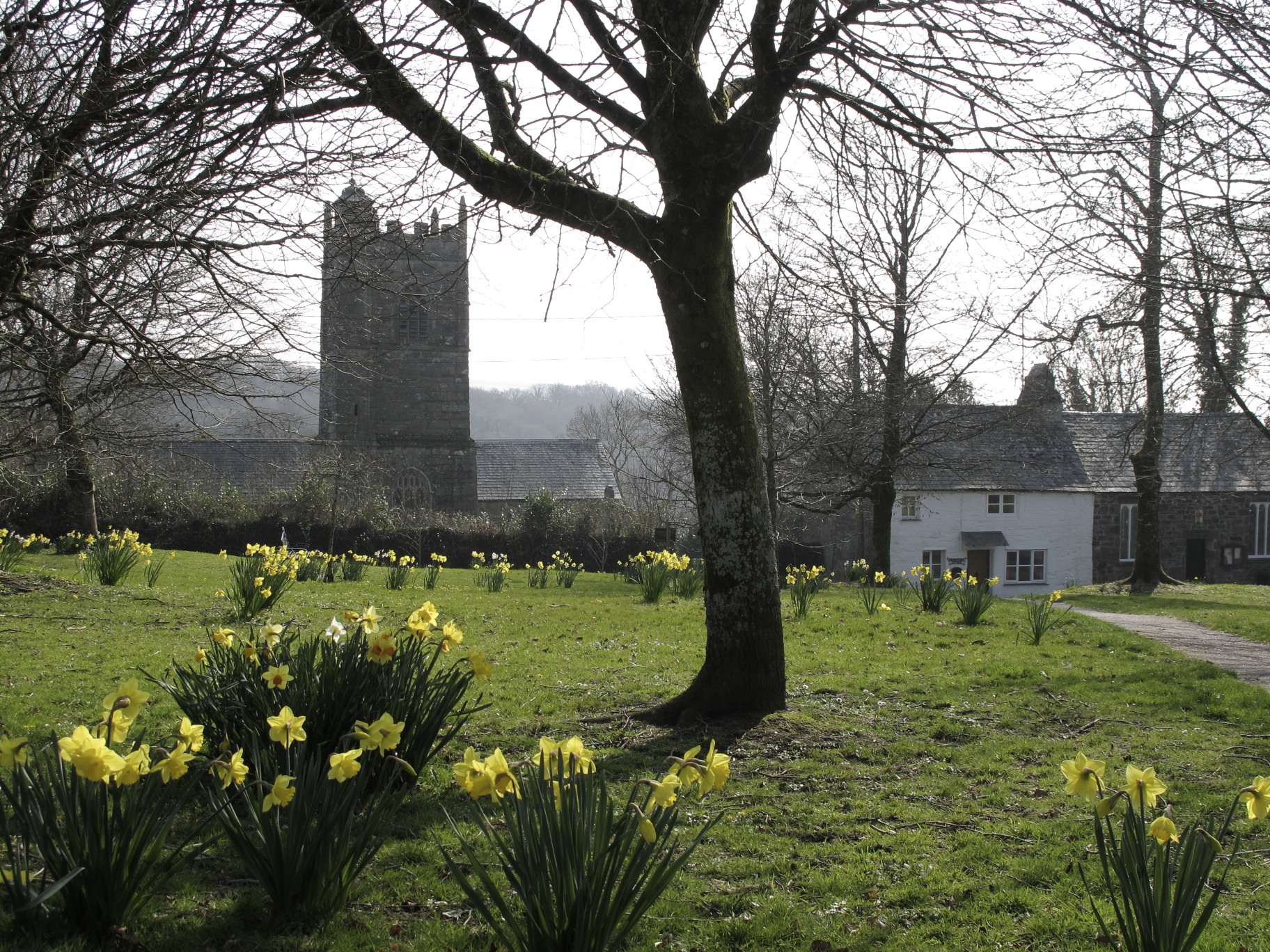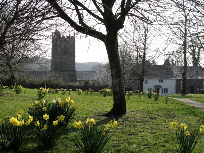I make my way back to the village green where the daffodils are in full bloom and cross down to the churchyard to see what kind of color I can find there.